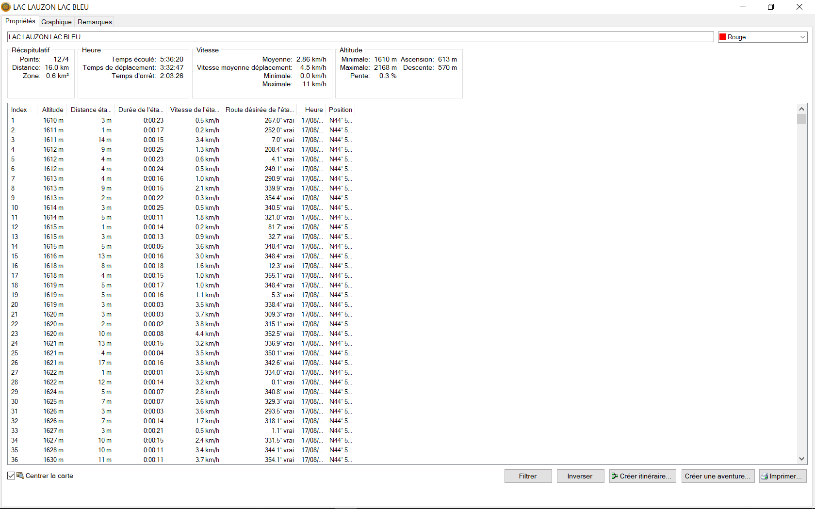 Dès le matin du 16 août nous faisons notre première randonnée :21,500 Kms et 582 mètres de dénivelé .